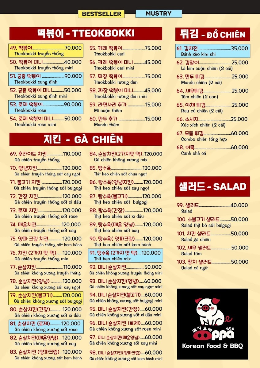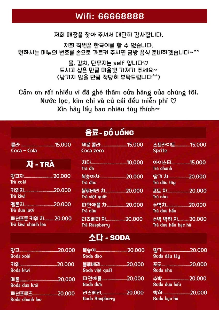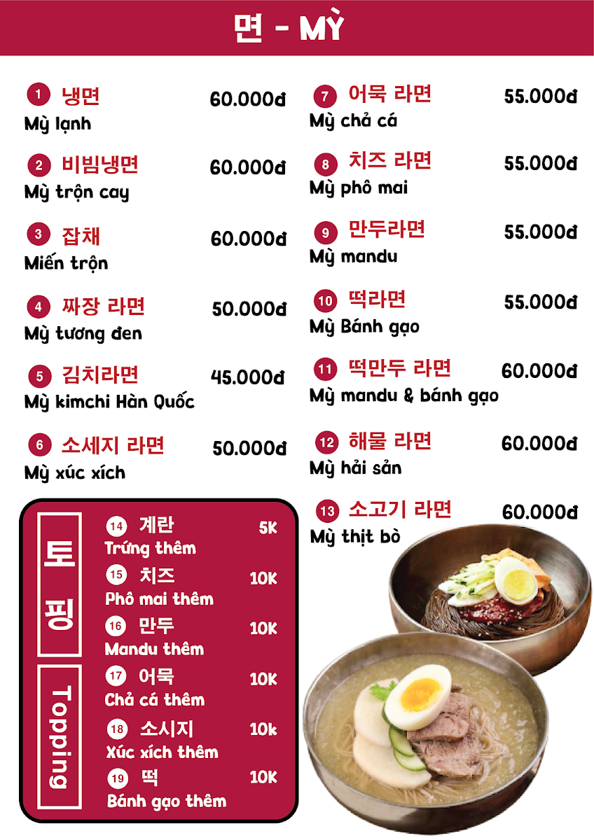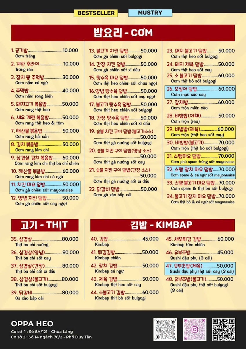 Introducing the Menu of BIG BOSS - COM HAN QUOC